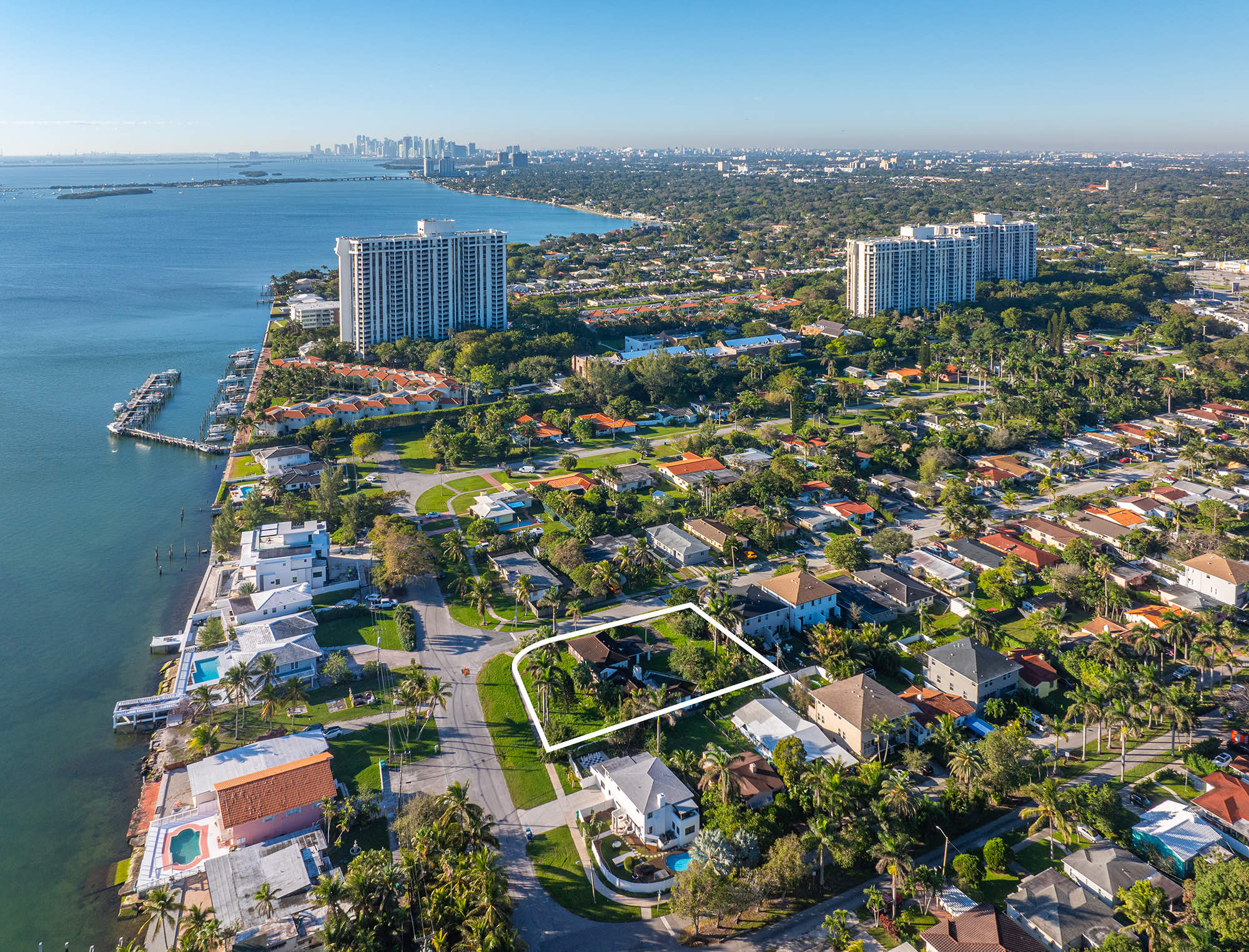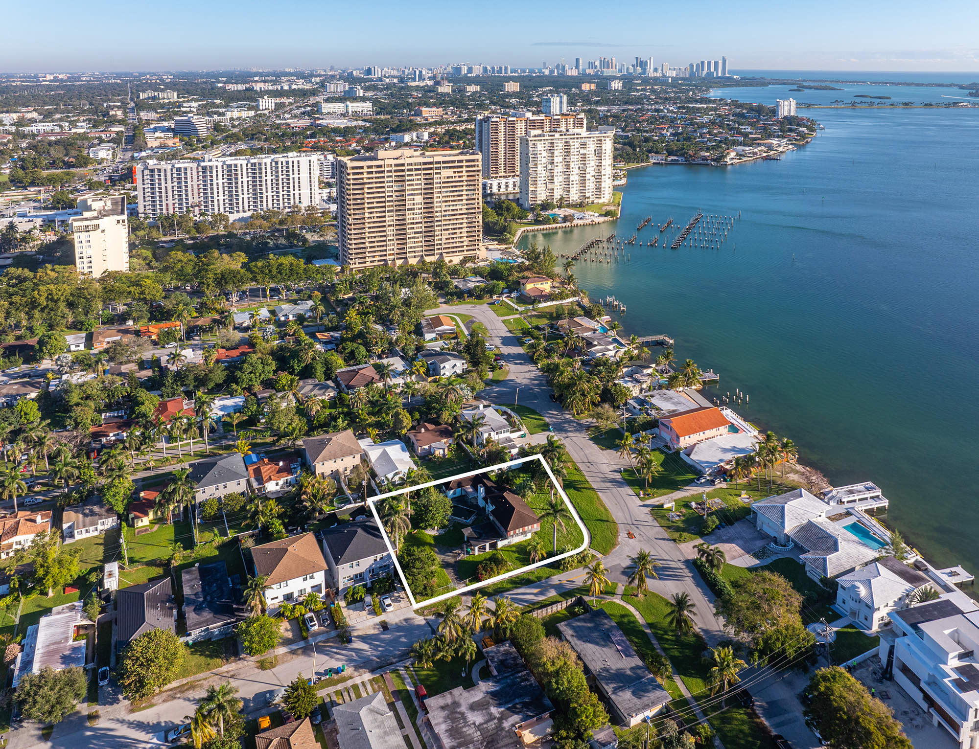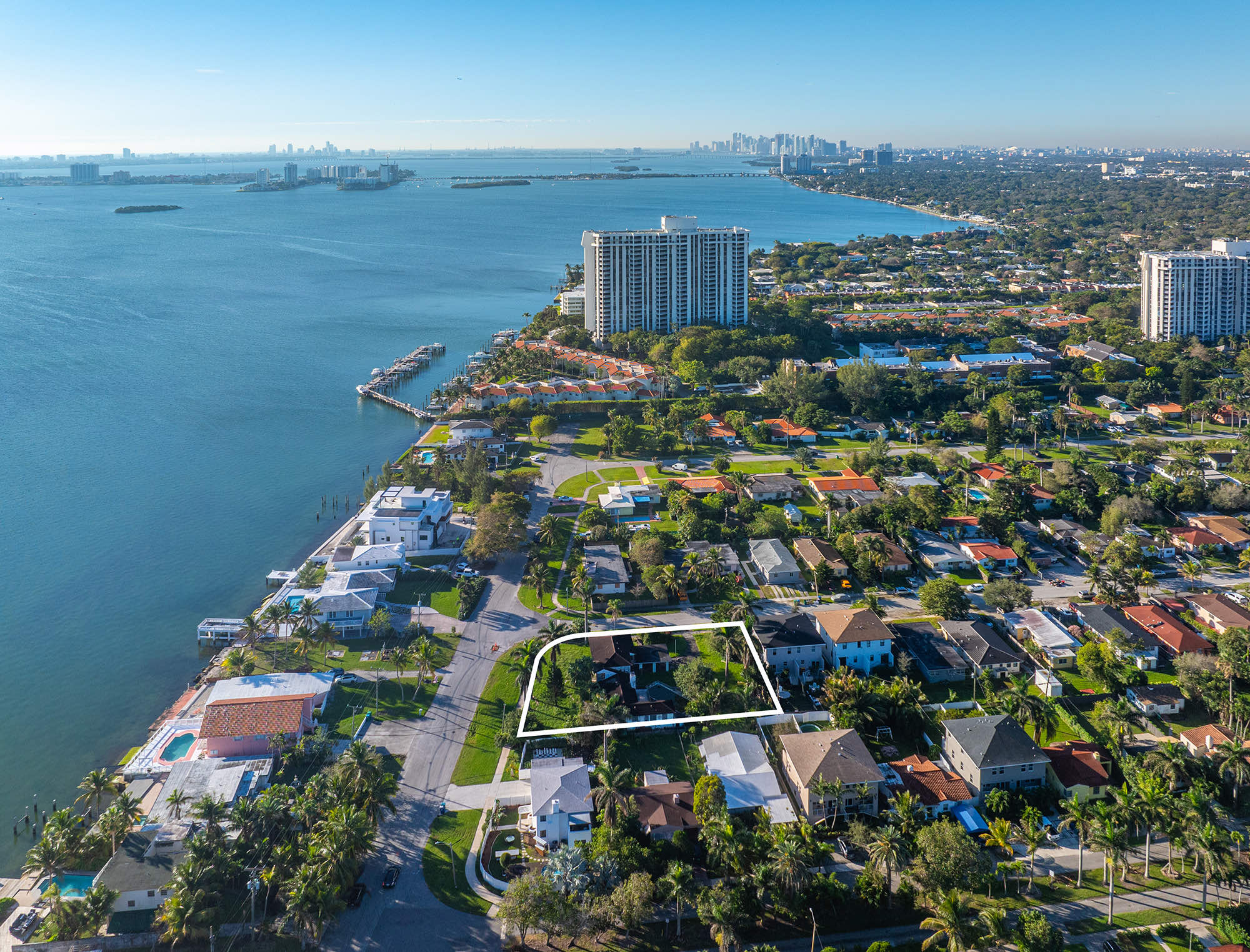 Exceptional 20,000 sqft corner lot with Stunning Biscayne Bay views. Plans included for two 3,000 sqft duplexes, (totaling 12,000 Sf under air) featuring rooftop pools. An opportunity for waterfront luxury living, seamlessly blending opulence with bay tranquility. Craft your masterpiece in this prime location, where meticulous plans testify to a commitment to excellence. Whether an astute investor or luxury enthusiast, envision an iconic enclave of sophistication. Elevate your living experience in this rare canvas, awaiting the masterpiece of your exquisite waterfront dream home.